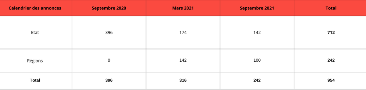 Au total, l’enveloppe disponible annoncée par l’Etat et les régions métropolitaines représentaient fin 2021 près de 954 millions d’euros.