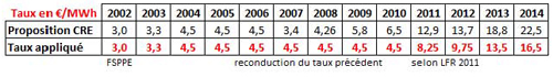 La réalité, politicienne, est plus subtile : fort de sa prédominance au Conseil d'Administration d'EDF, l'Etat avait bloqué ce taux à 4,5 €/MWh, continûment de 2004 à 2010.