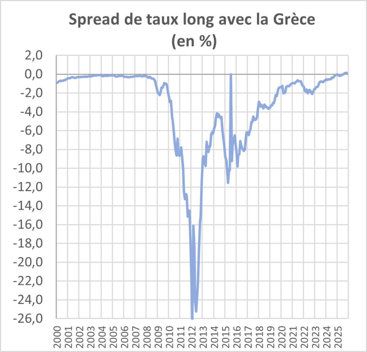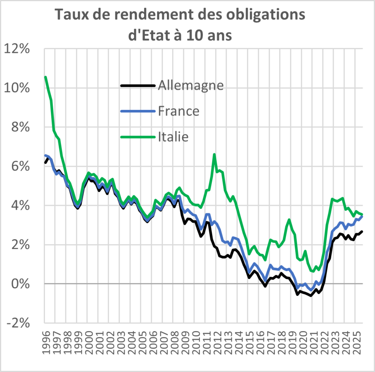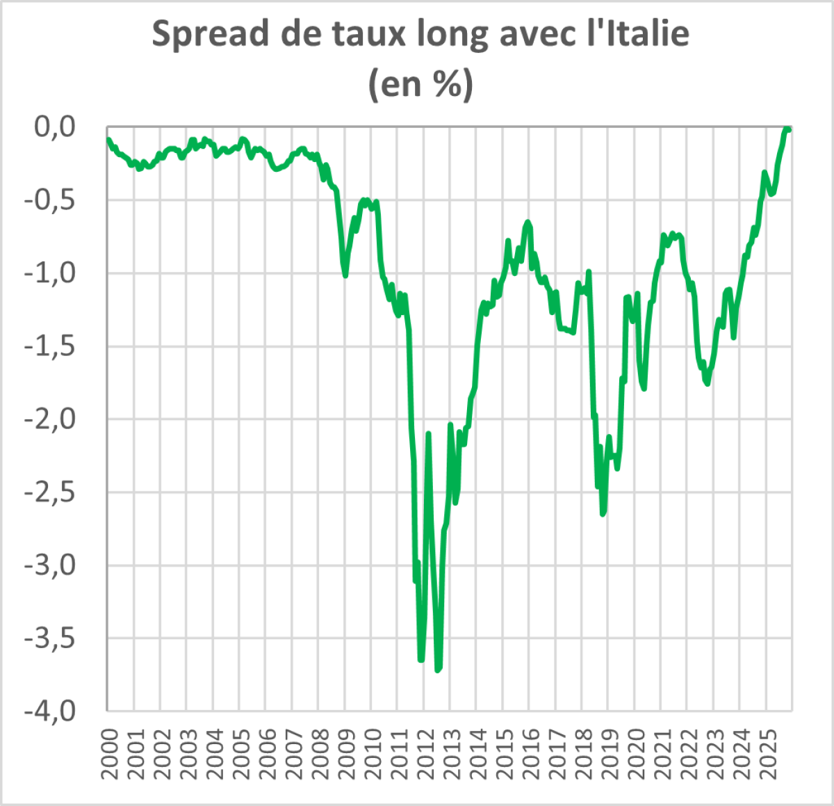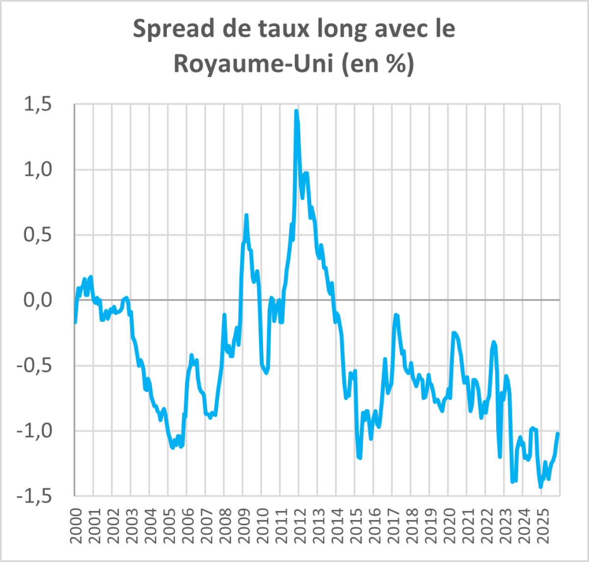 Nous constatons une légère tension sur les taux et une progression lente mais régulière du spread entre le taux de rendement des obligations d’Etat françaises à long terme et ceux de tous les autres pays, y compris des pays du sud de l’Europe avec lesquels nous avions traditionnellement un avantage en matière de taux,