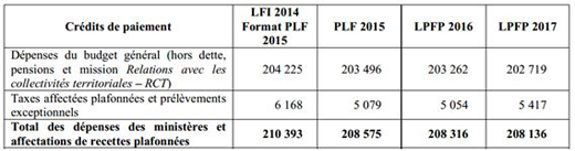 [3] Voir PLF 2015, p.14 encadré, Définition de l'évolution tendancielle des dépenses de l'État.