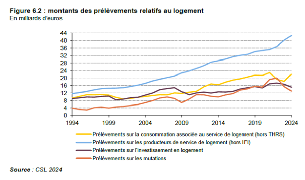Comme le souligne le rapport, entre 2014 et 2024, l’évolution des prélèvements obligatoires sur le logement a été supérieure à celle de l’ensemble des prélèvements obligatoires.