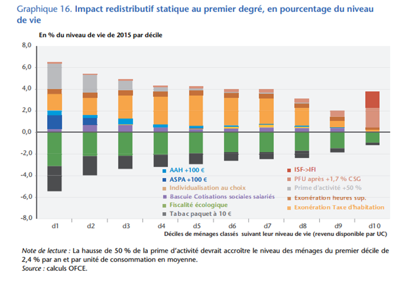 Soit en limitant l’affichage de la décomposition des mesures, les effets sur le niveau de vie suivants (PLF 2017, p.13) :
