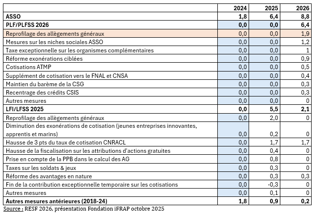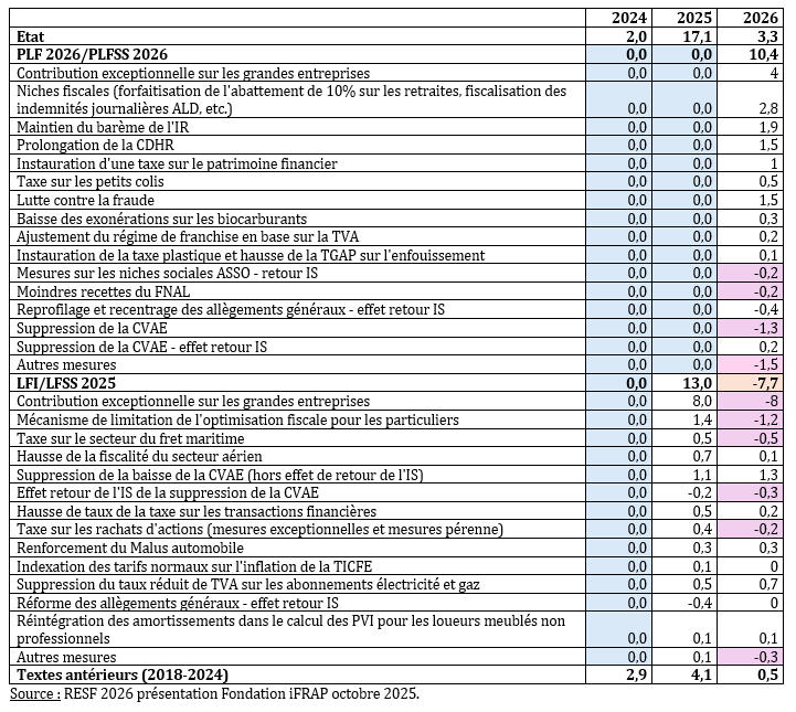Si l’on ne tient compte que des mesures contenues dans les PLF/PLFSS 2026