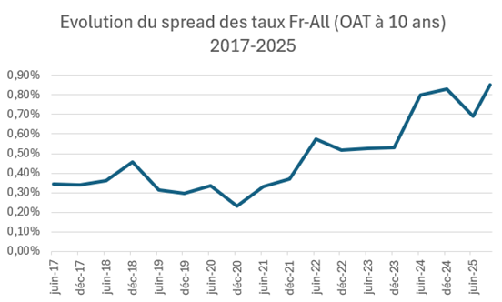 Une augmentation du spread des taux depuis 2022, qui s’accélère depuis la dissolution de 2024