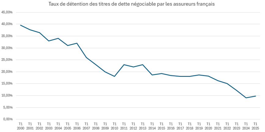 Une baisse de la détention de la dette négociable par les assureurs français au profit des non-résidents