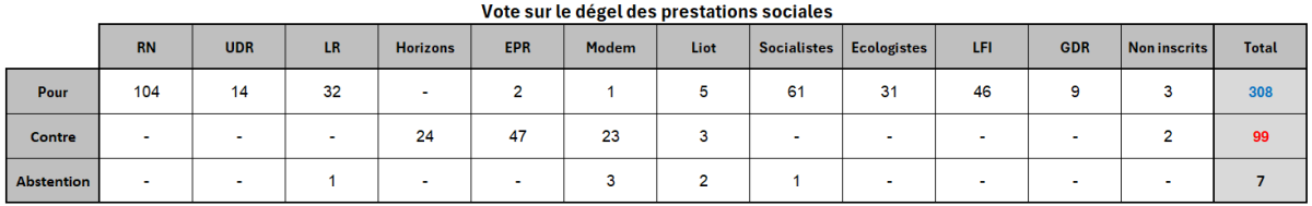 Cette revalorisation a été votée par le RN, UDR, LR, EPR, LFI et GDR
