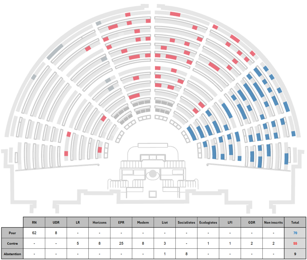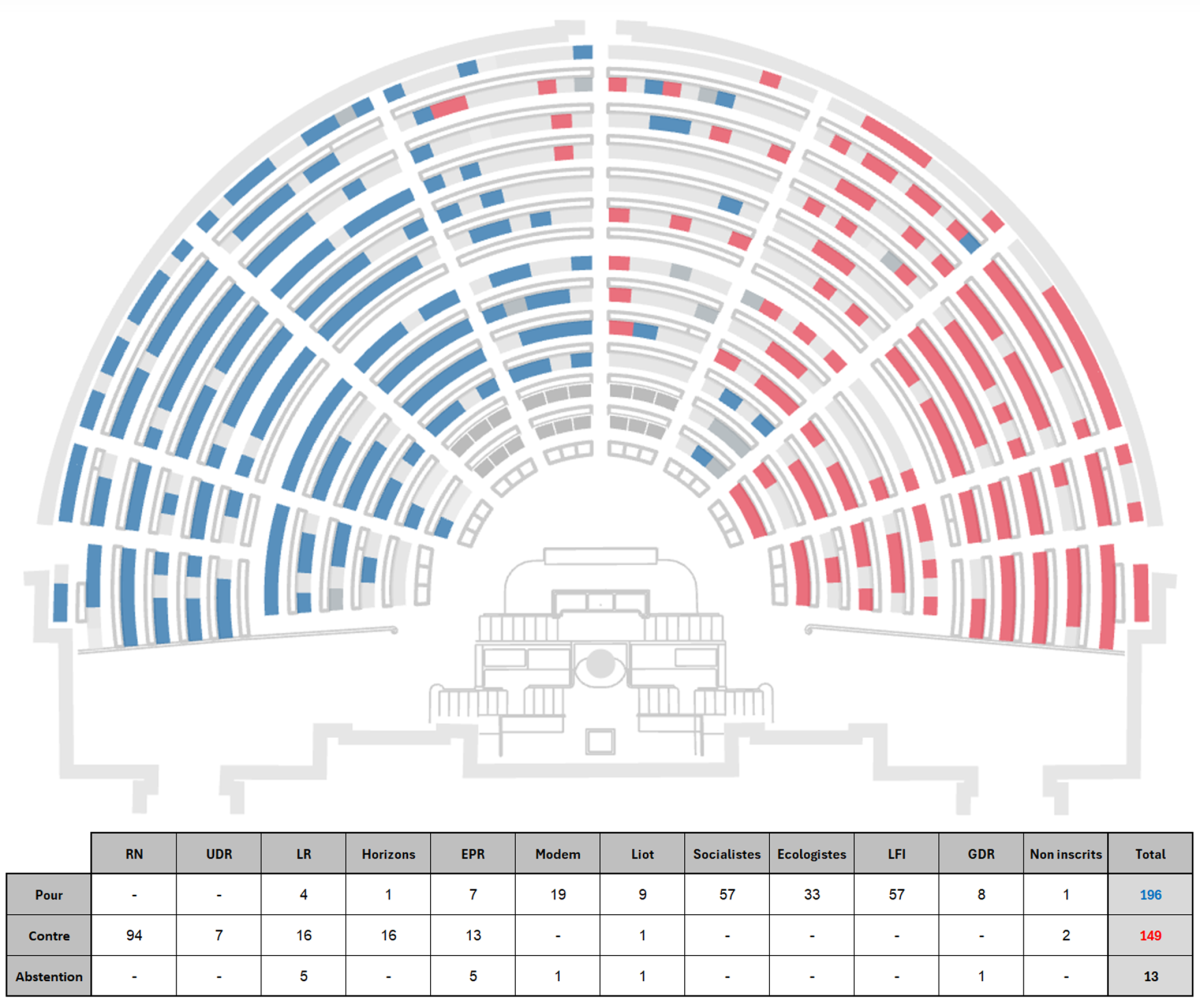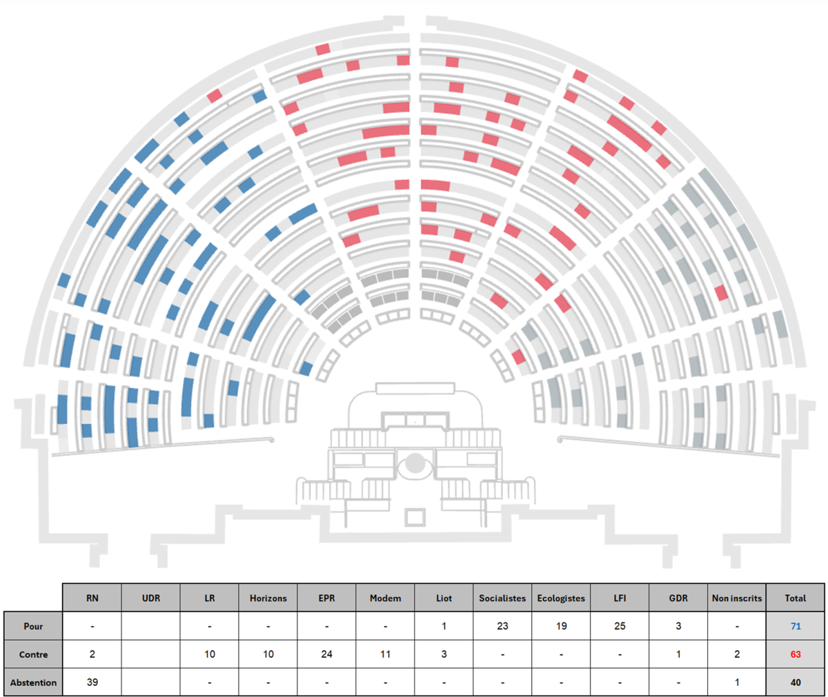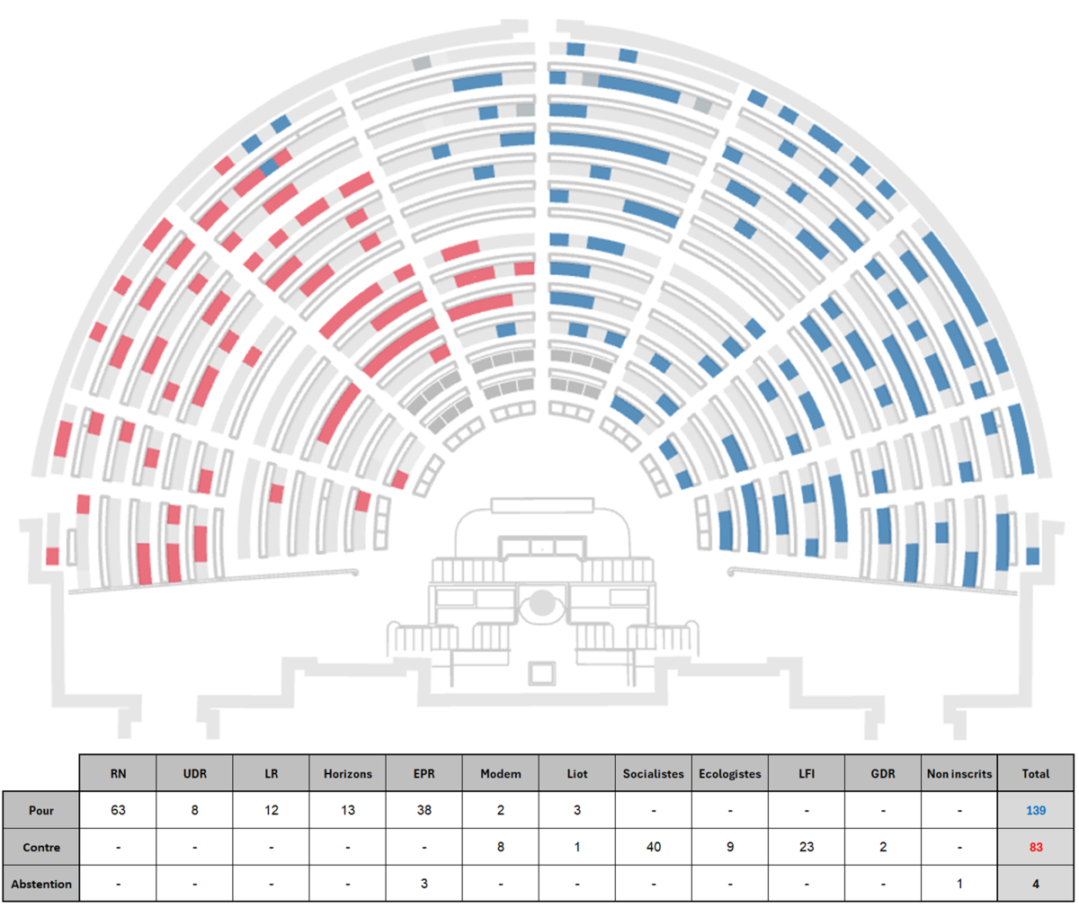 Il a été adopté grâce aux votes des groupes EPR, Horizons, LR, UDR et RN.
