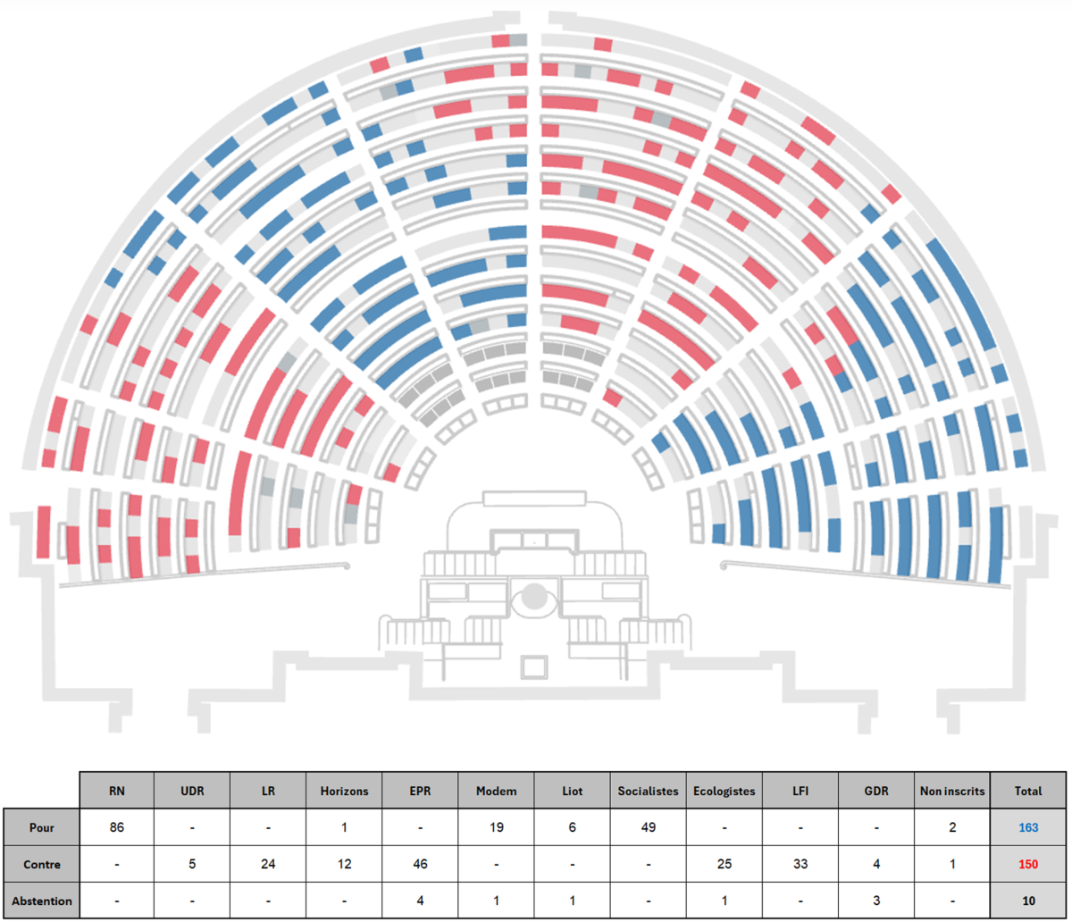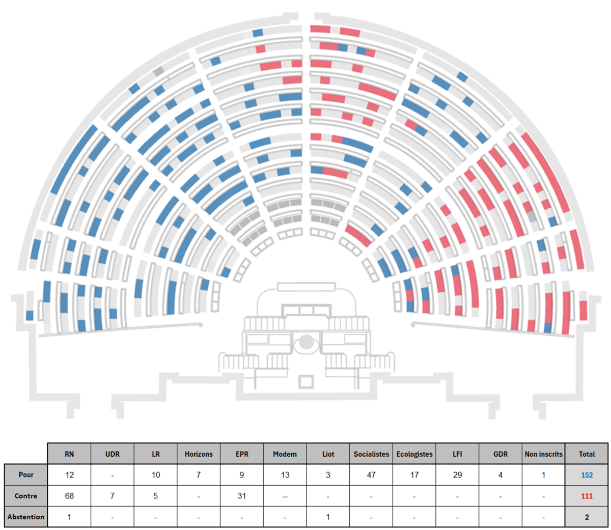 Cet amendement a été voté par le RN, Horizons, le MoDem et tous les groupes de la gauche.