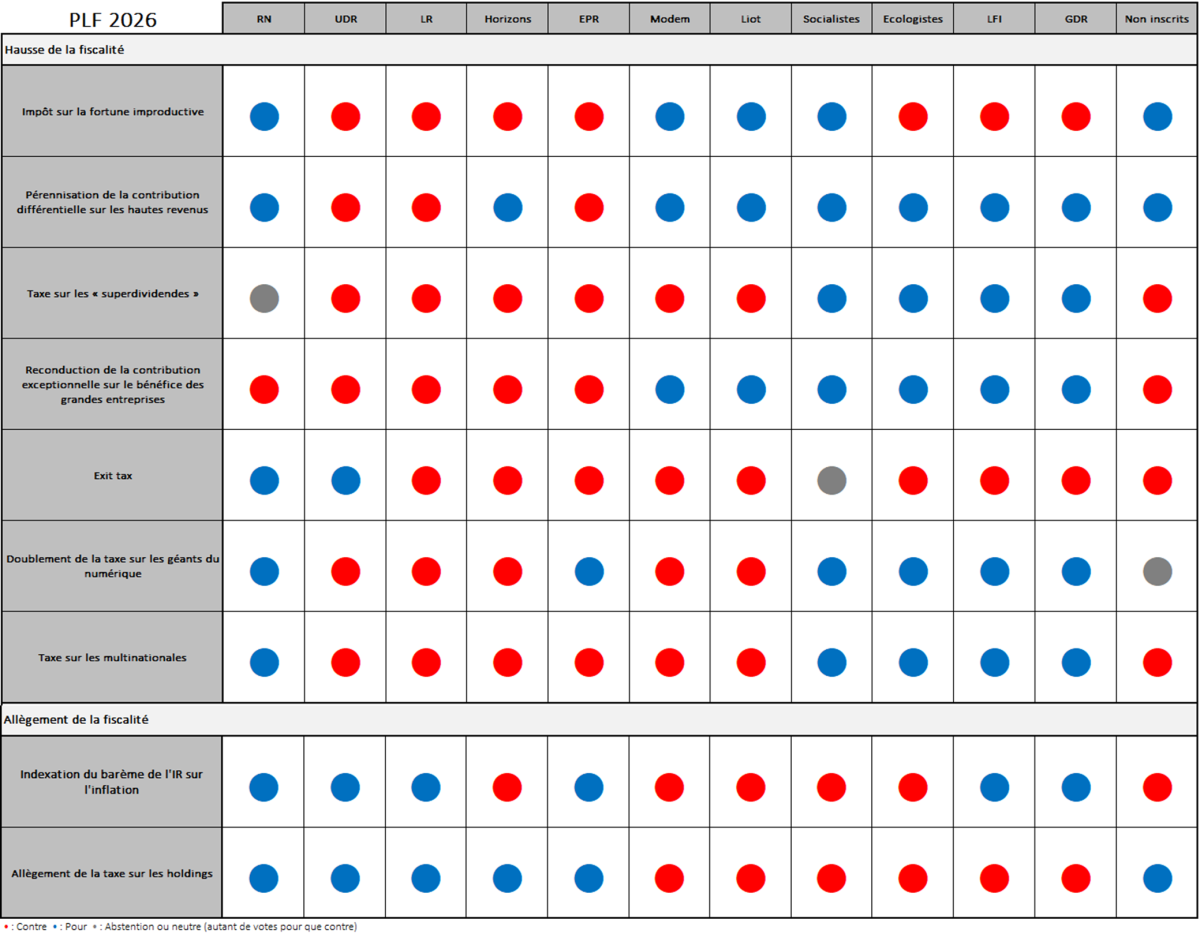 Dans le cadre des discussions de la loi de finances et de la loi de financement de la sécurité sociale, voici le relevé de votes des principaux amendements adoptés à la fois en recettes et en dépenses.