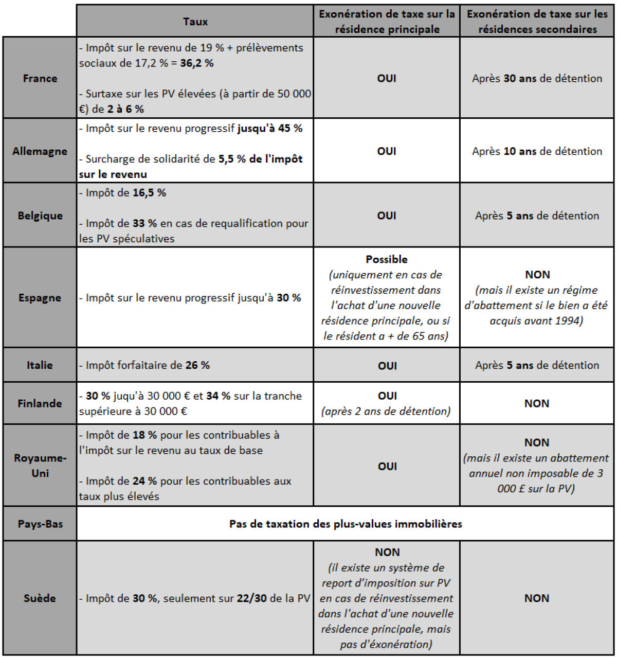 Comment les plus-values immobilières sont-elles taxées dans les autres pays européens ?