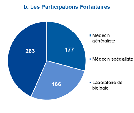 Graphique 1 - Répartition des montants dus au titre des franchises et des participations forfaitaires en 2022 en millions d’euros