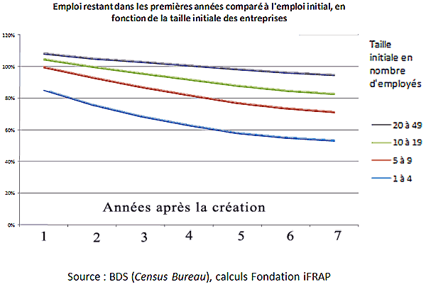Ainsi, ce sont les start-ups de taille significative qui ont le plus tendance à créer des emplois durables. Heureusement, tous les grands groupes ne sont pas en plan social permanent ; mais cette étude montre qu'ils ne créent pas d'emploi en moyenne. Ce sont les entreprises jeunes et dynamiques dès leur création qui sont la source des emplois, et l'État, plutôt que de se concentrer sur le soutien aux grandes entreprises, doit réduire les freins à la création de start-ups innovantes : par exemple en allégeant le processus de création d'entreprise à plusieurs salariés, et en mettant en place un environnement favorable à l'investissement dans les start-ups.