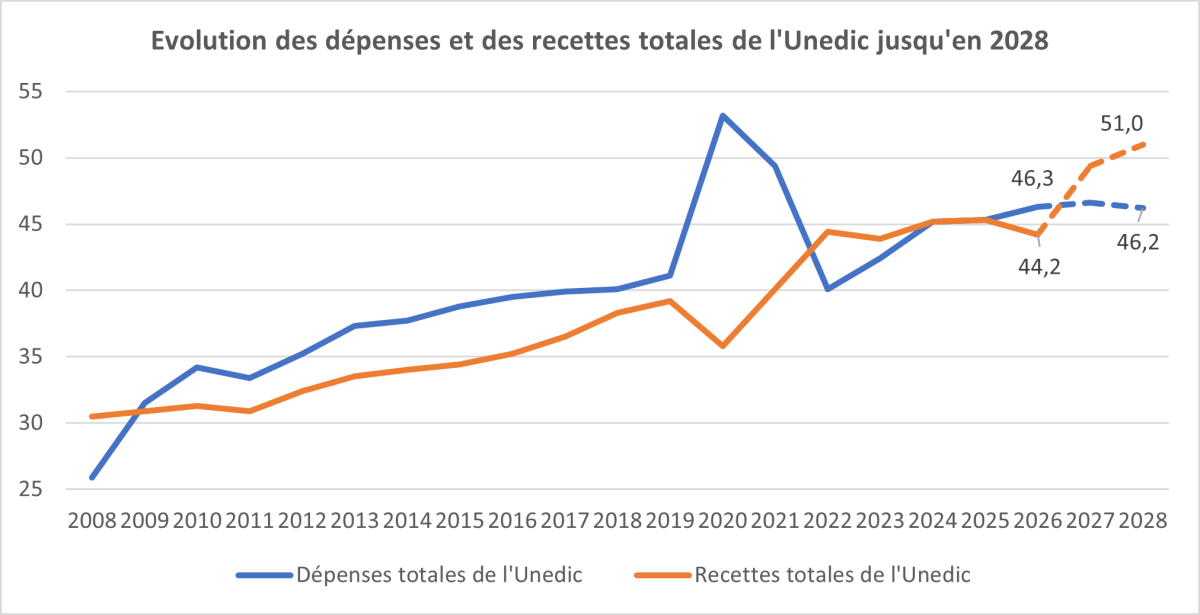Perspectives financières de l’Unédic : -2,1 Md€ de déficit en 2026