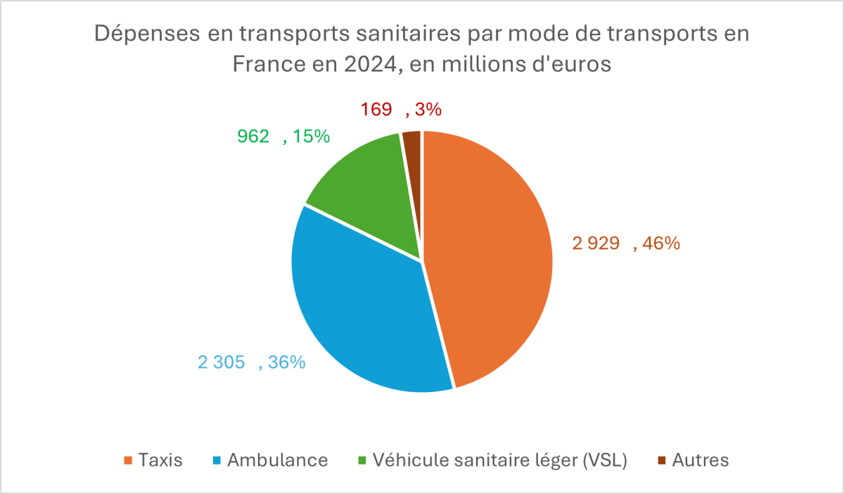 La France fait partie des pays européens, avec l’Allemagne, aux dépenses de transports sanitaires les plus élevées. En 2024, 6,5 millions de patients ont bénéficié d’un transport pris en charge par l’Assurance Maladie en France, pour un montant total de dépenses atteignant 6,74 milliards d’euros, dont 3,67 milliards d’euros pour les transporteurs sanitaires et 3,07 milliards d’euros pour les taxis conventionnés, selon le rapport Charge et Produit 2026 de la CNAM.