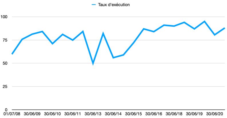 Taux d’exécution de 2008 à 2020