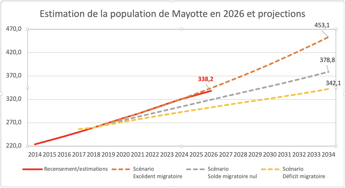 Mayotte en 2026 c’est a minima 338,200 habitants en 2026 en attendant le recensement de l’INSEE :