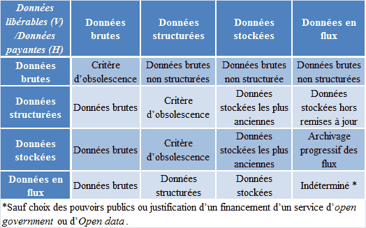 c. Données structurées disponibles sous forme de stock ou sous forme de flux, les premières pouvant accéder à la gratuité avant les secondes, etc.
