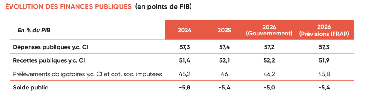 Le déficit, en l'absence d'efforts budgétaires conséquents et avec une croissance proche de son potentiel, aurait atteint 5,8 % en 2026. Nous pensons qu'il sera de 5,4%.