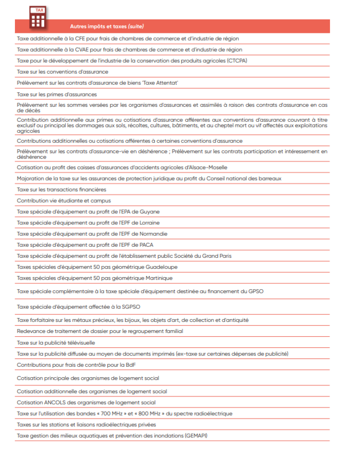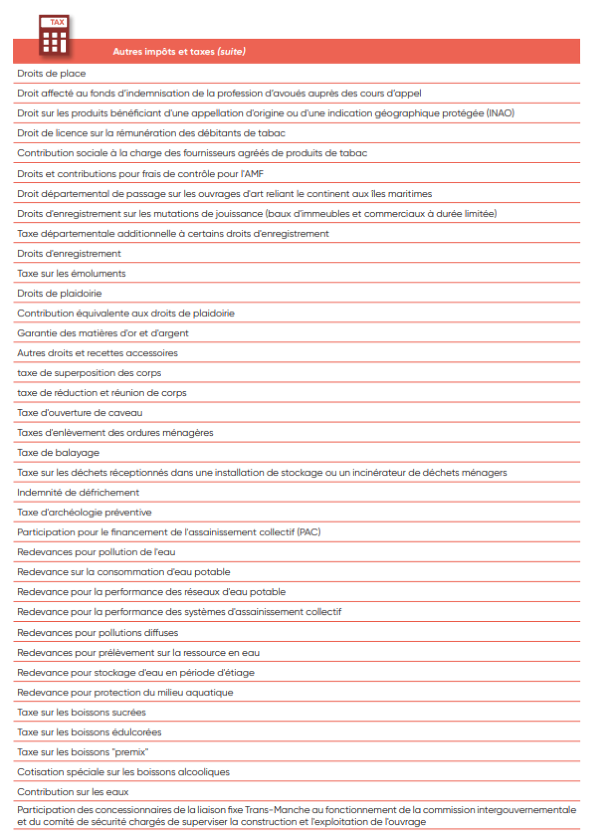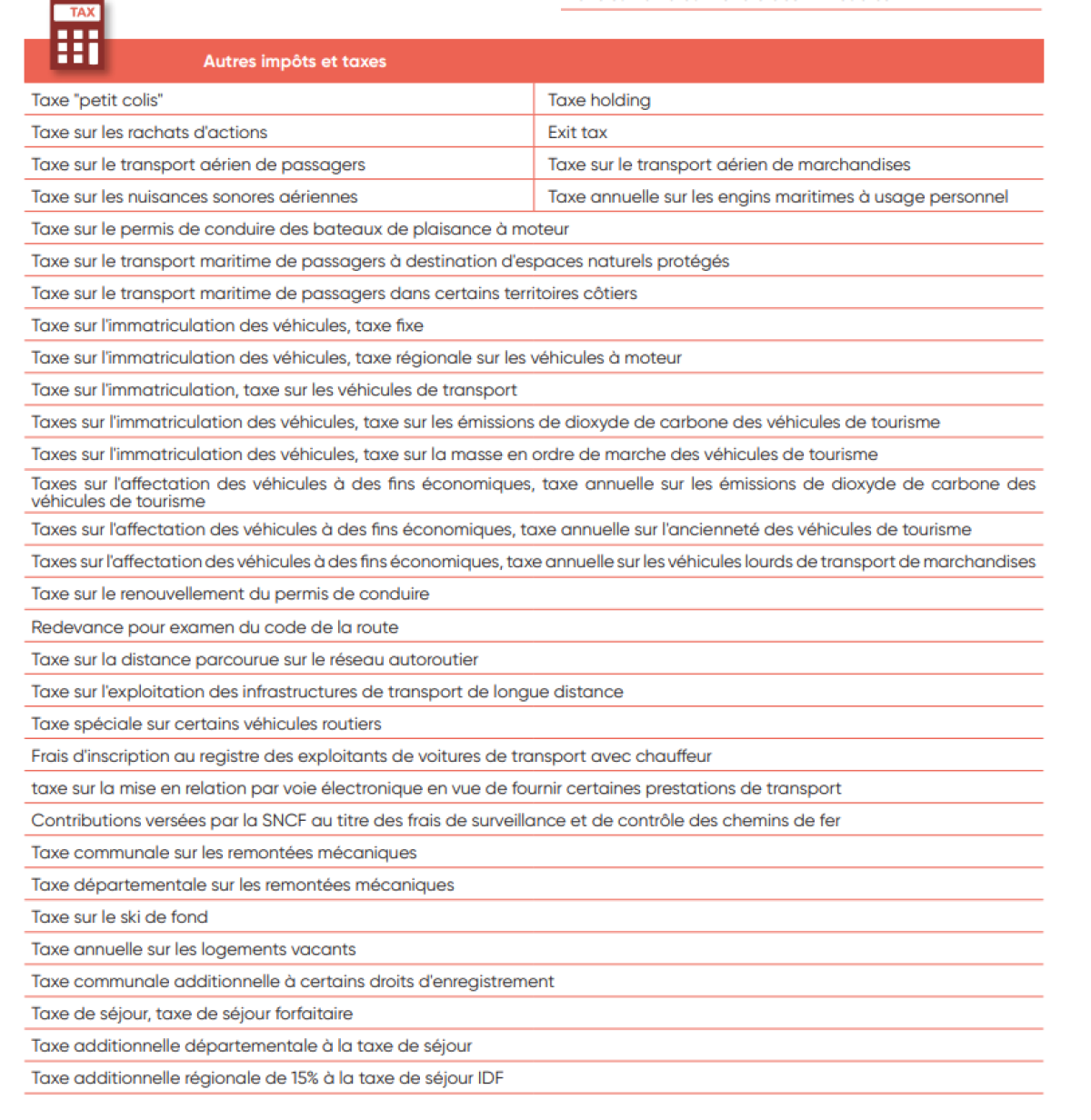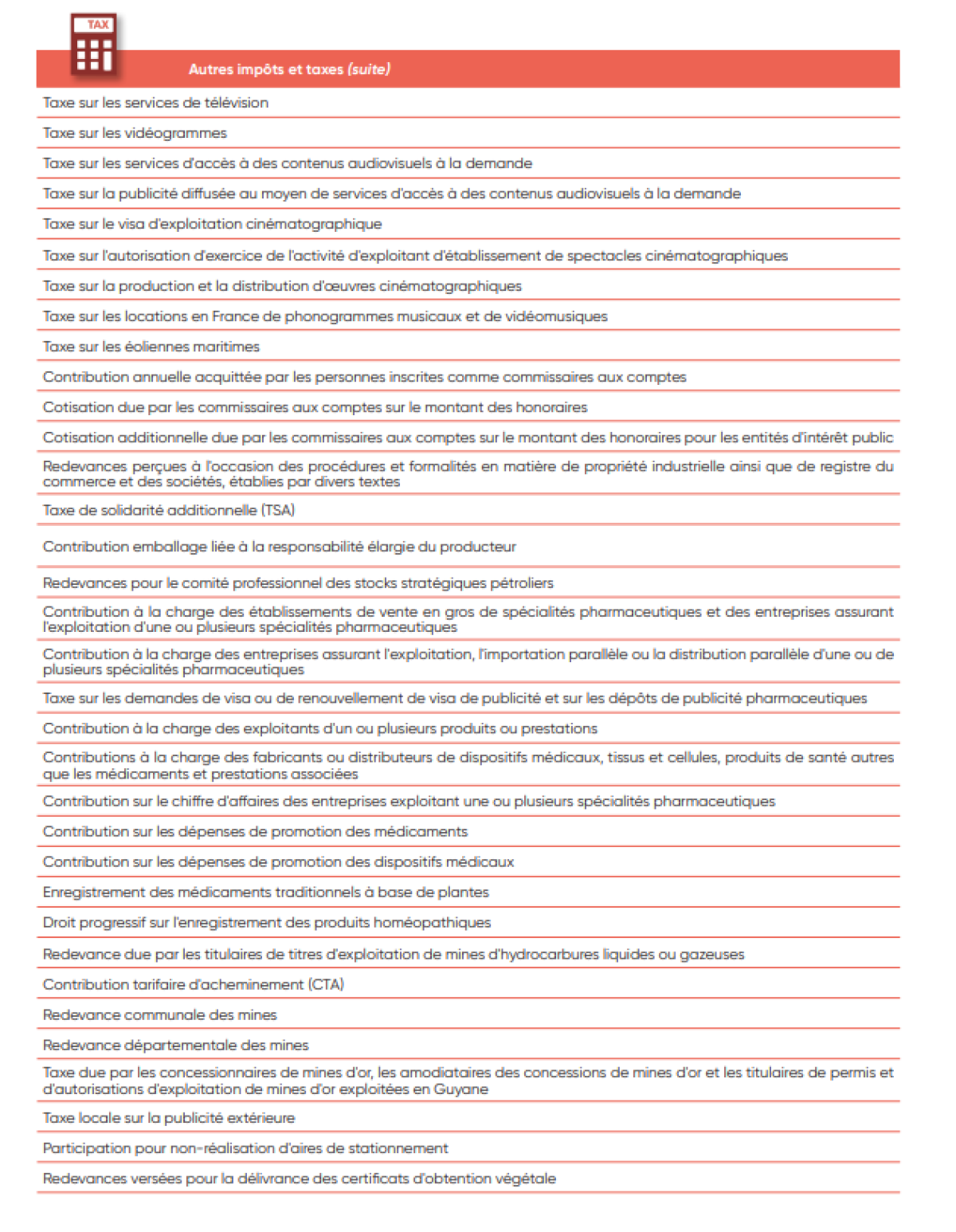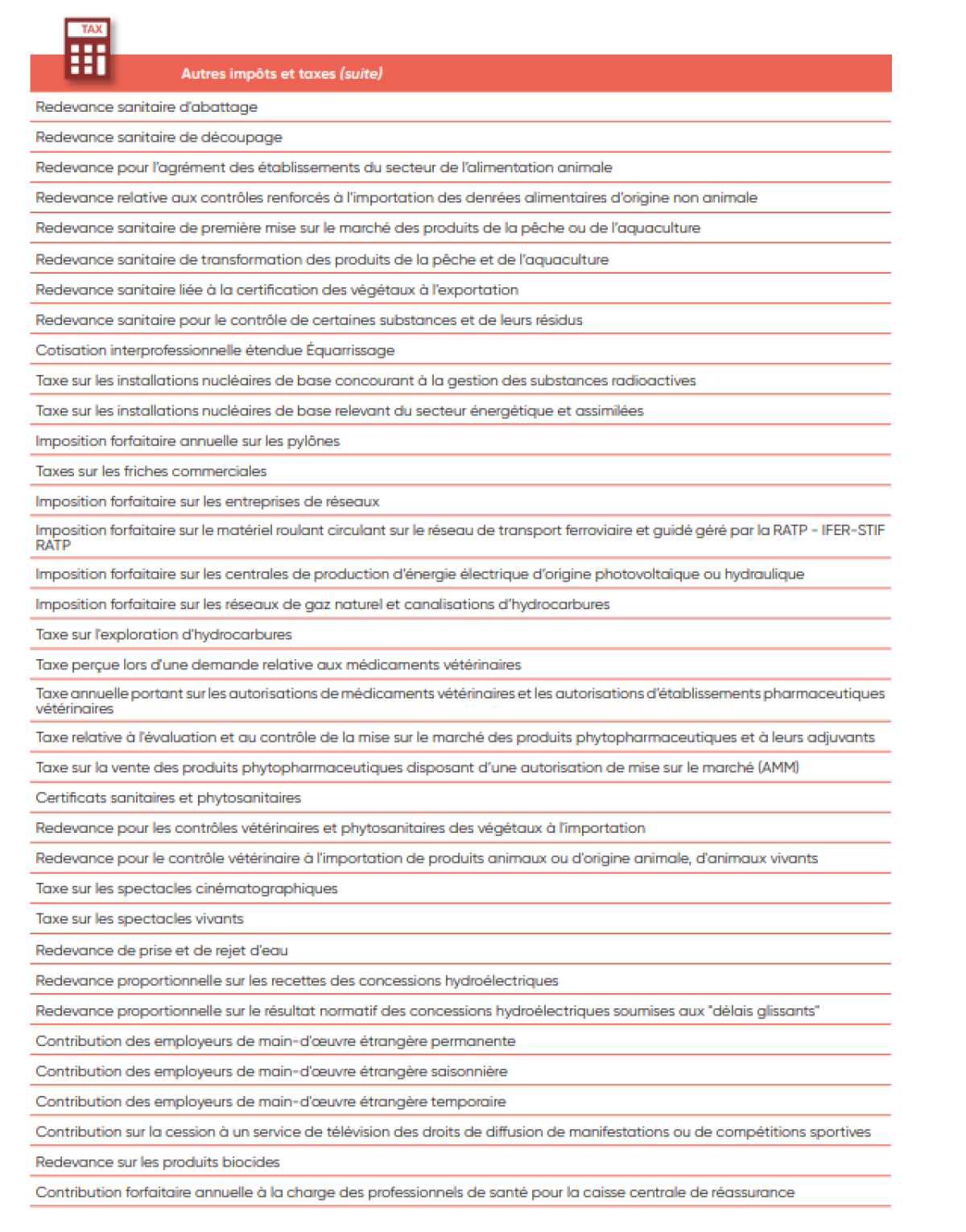 IV. Liste des taxes et impôts