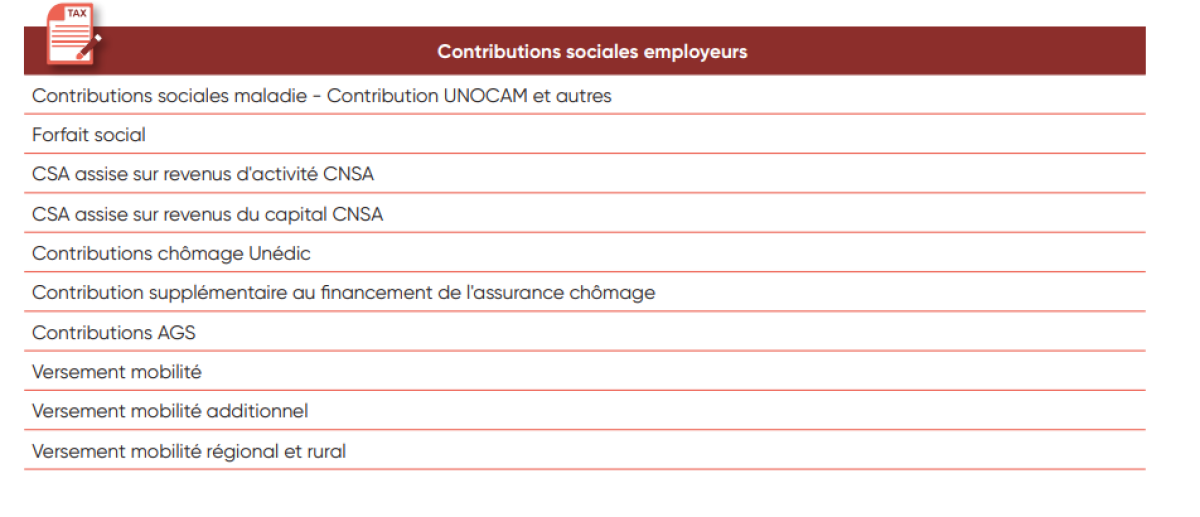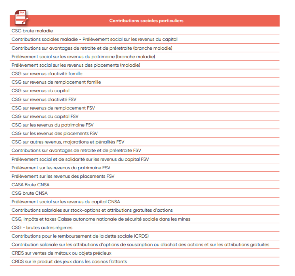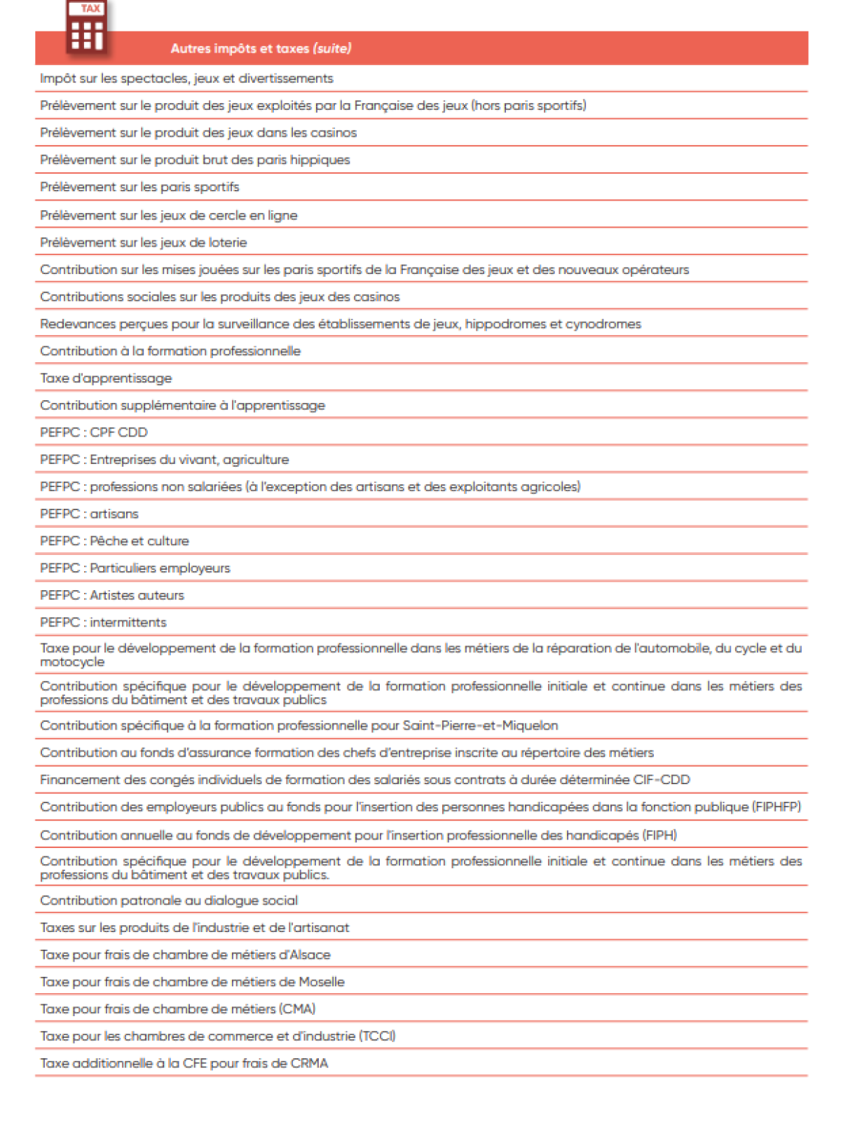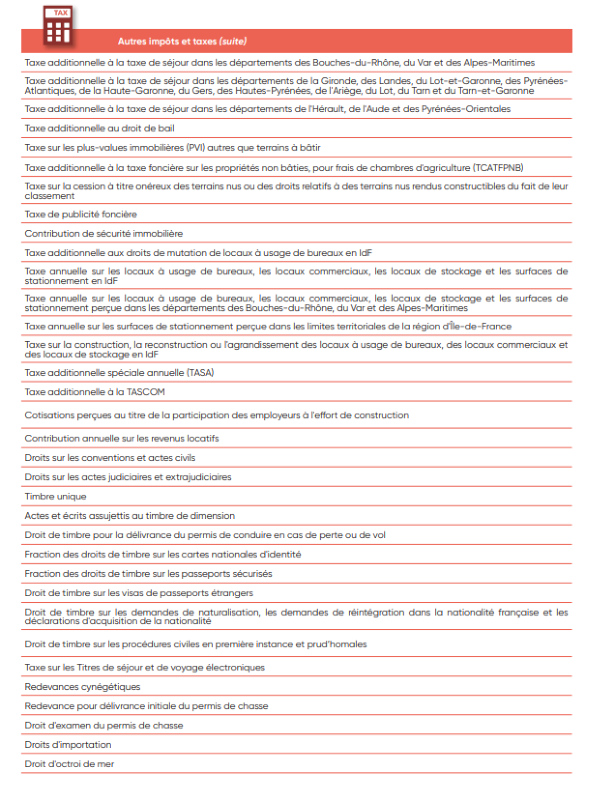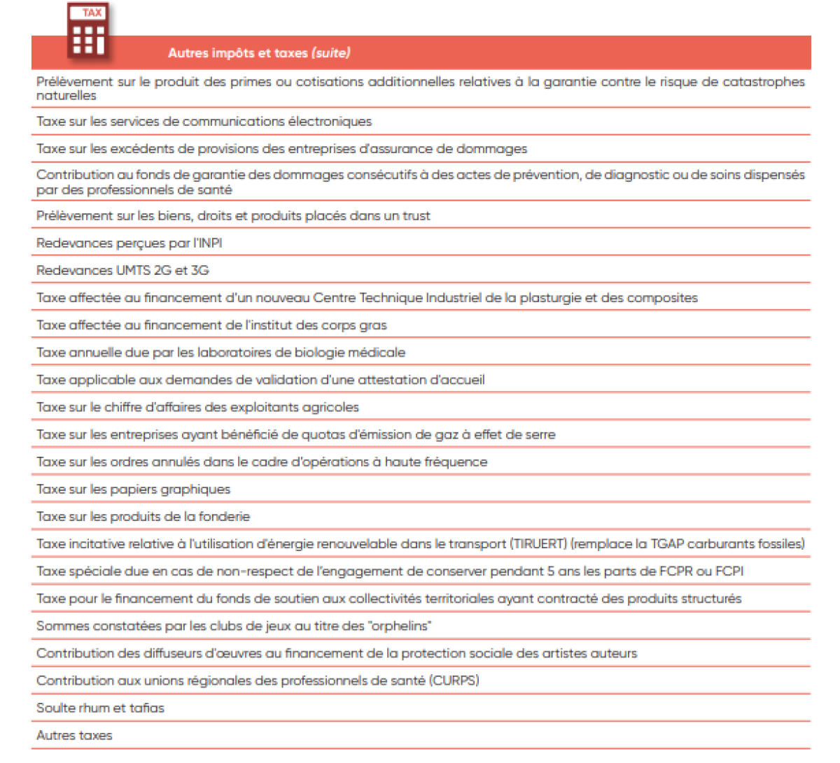 IV. Liste des taxes et impôts