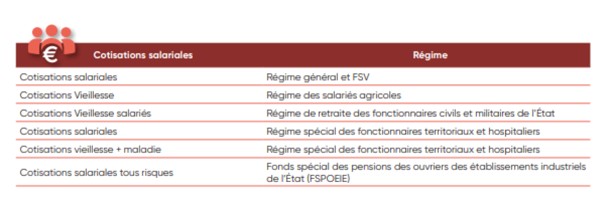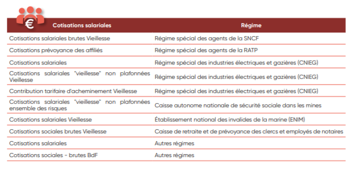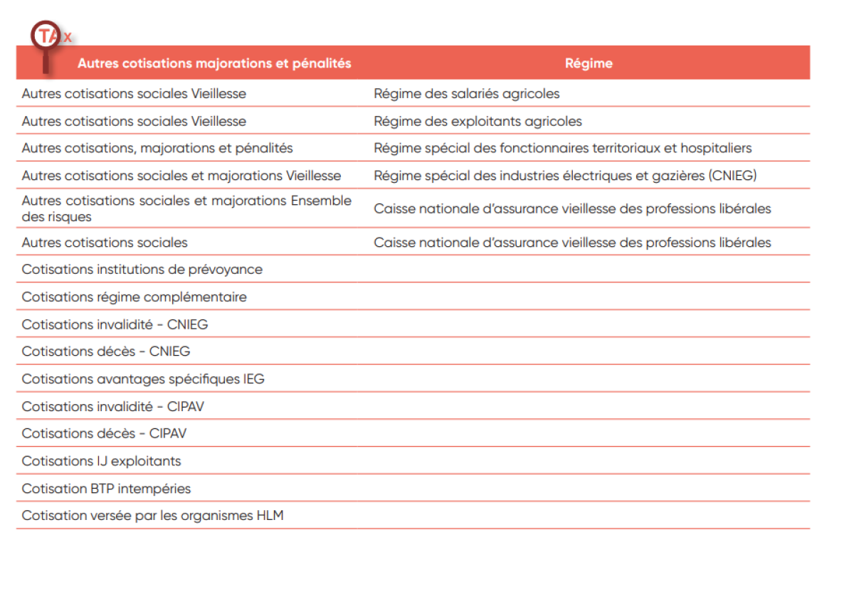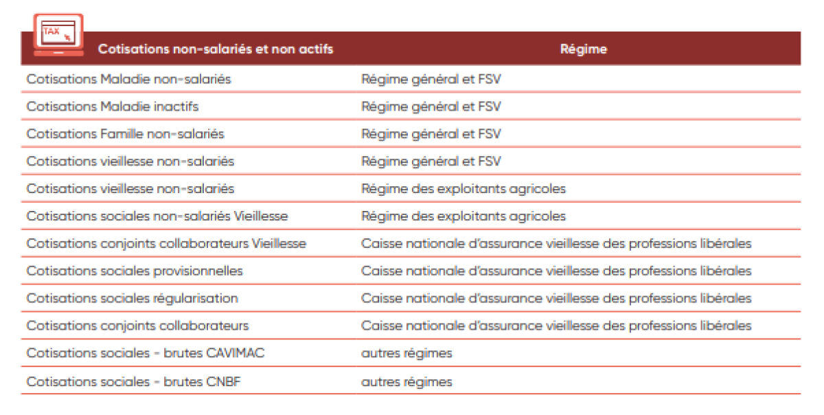 IV. Liste des cotisations