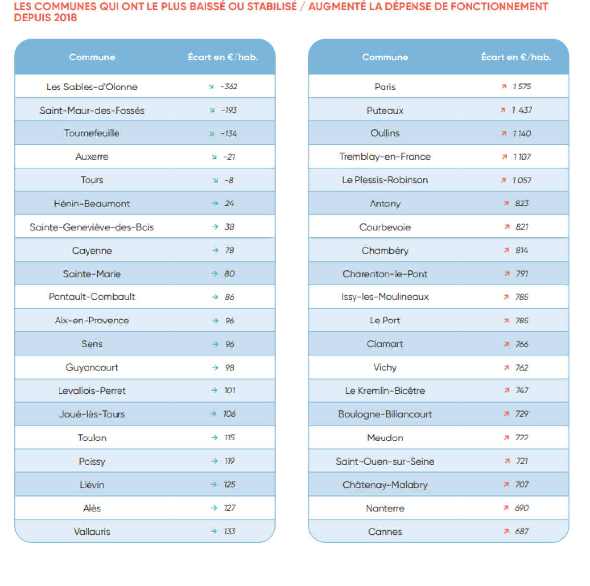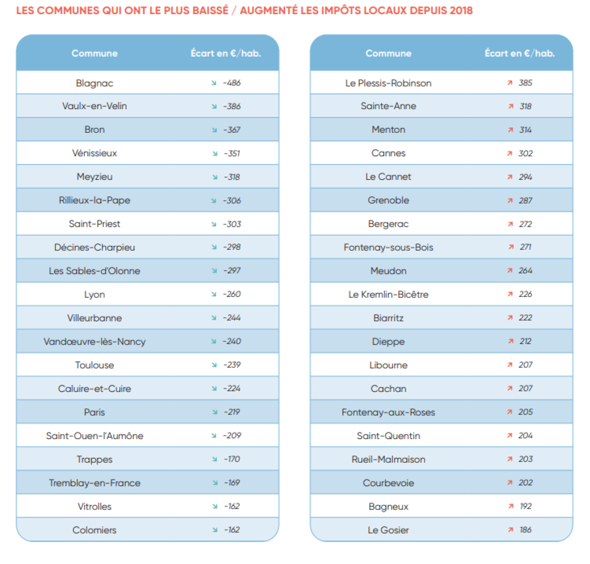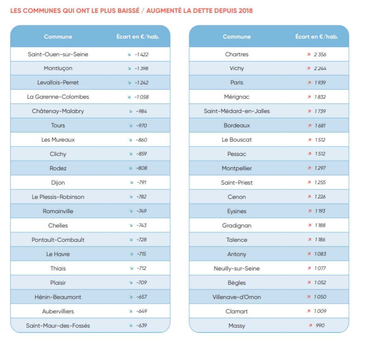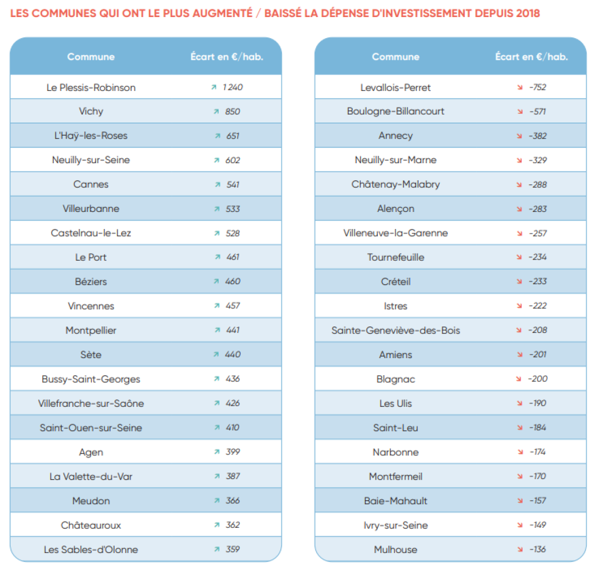 Nous présentons aussi les écarts par rapport au dernier classement (2020, chiffres 2018) pour mesurer les évolutions sur le dernier mandat, en présentant les villes qui ont le plus progressé ou reculé par rapport à notre dernière étude.