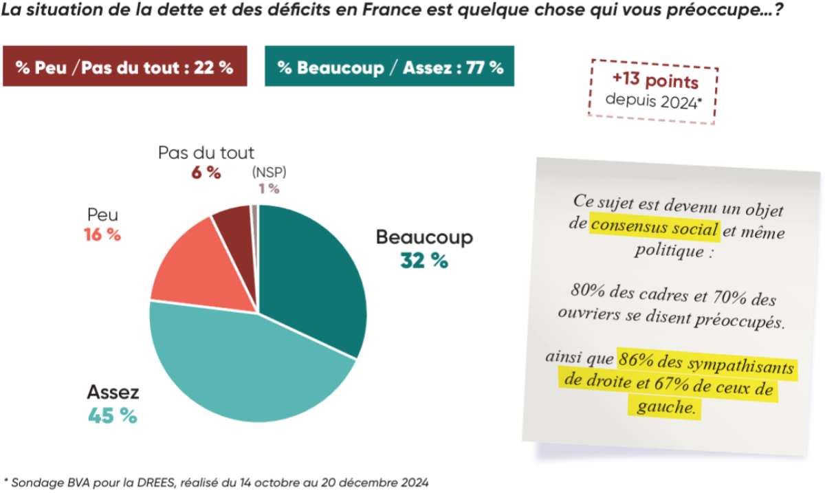 La situation de la dette et des déficits préoccupe désormais plus des trois quarts des Français (77%)… soit une hausse de 13 points en un an[1].