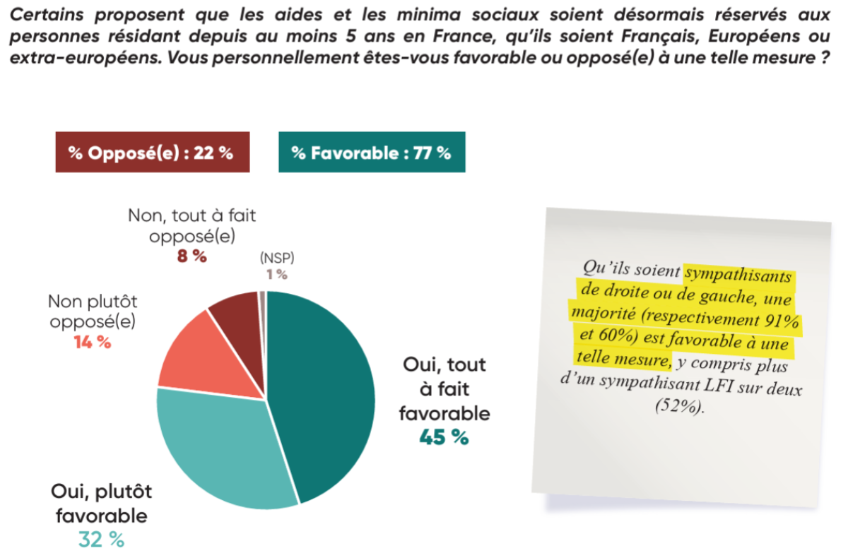 Ils sont aussi 77 % à souhaiter que ces aides soient désormais réservées aux personnes résidant en France depuis plus de 5 ans.