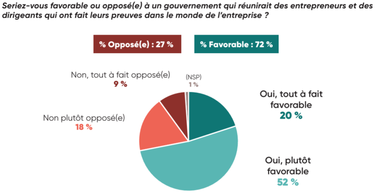 Encore plus audacieux, les Français remplaceraient bien les habituels professionnels de la politique par des entrepreneurs