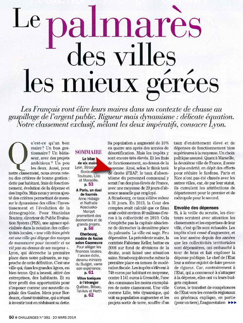 Jeudi 26 mars, dans un numéro consacré aux villes les mieux gérées, le magazine Challenges cite l'étude de la Fondation iFRAP sur les 30 premières communes de France et l'absentéisme des agents des communes.