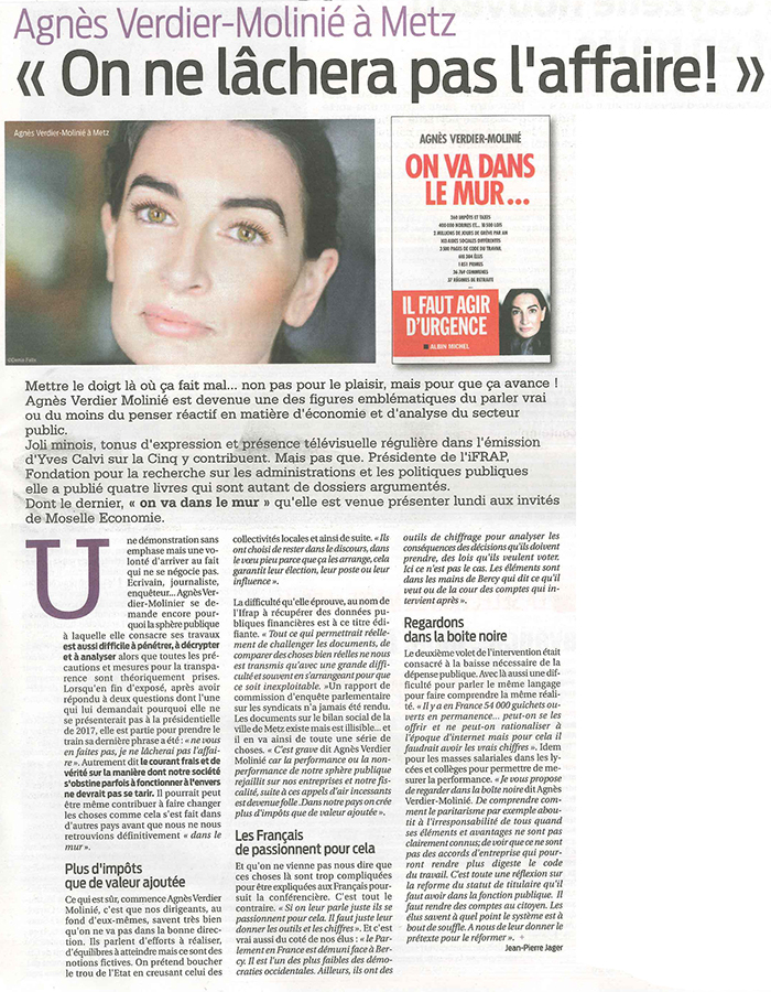 Fin octobre, l'hebdomadaire La Semaine publiait une interview d'Agnès Verdier-Molinié, directeur de la Fondation iFRAP.