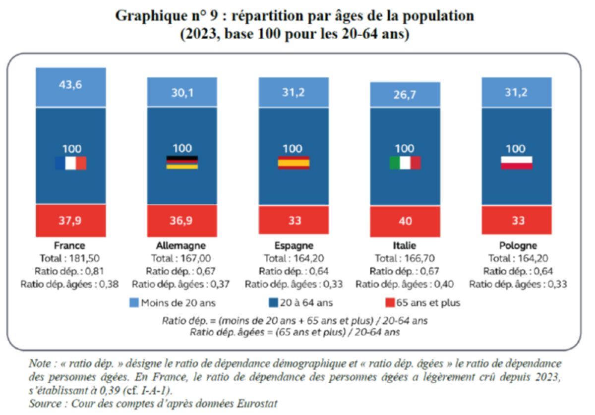 Le rapport de la Cour des comptes intitulé Démographie et finances publiques laisse un peu sur sa faim. Si tous les effets du vieillissement de la population et de la diminution de la population active sur l’équilibre des comptes publics sont abordés, la Cour ne tire pas de recommandations. Au contraire, sa conclusion est très prudente : « la Cour n’a pas entendu formuler de recommandations immédiates aux pouvoirs publics » ; « les grandes questions et options identifiées pour affronter ces défis, qui relèvent pour l’essentiel de choix politiques et sociaux qu’il appartient aux responsables politiques de formaliser puis d’arbitrer ». Pourtant ce débat est d’une actualité brulante à l’heure où le Parlement doit voter le PLFSS, dont l’une des mesures phares est la suspension de la réforme des retraites. Tout au long du rapport, la Cour dit bien que les réformes successives des retraites ont eu et vont avoir des effets bénéfiques sur l’équilibre des finances publiques, mais une prise de position plus vigoureuse sur le sujet aurait été bienvenue. Au lieu de dire qu'il faut "repenser la tranche d'âge 60-70 ans comme une décennie où l'activité professionnelle devra continuer à prendre une place croissante pour ceux qui le pourront", elle aurait pu trancher "il faut repousser l'âge de départ à la retraite"...