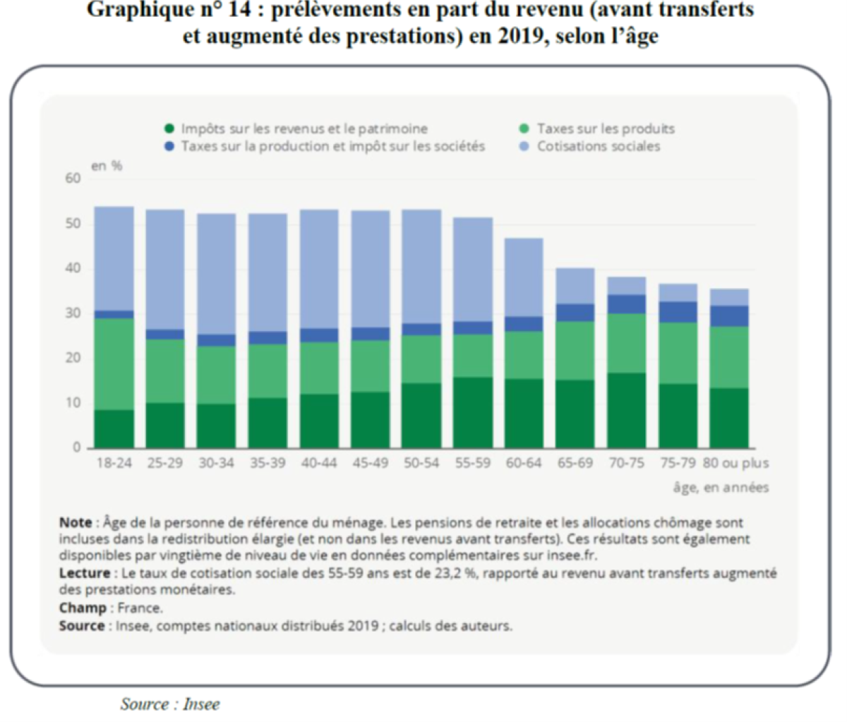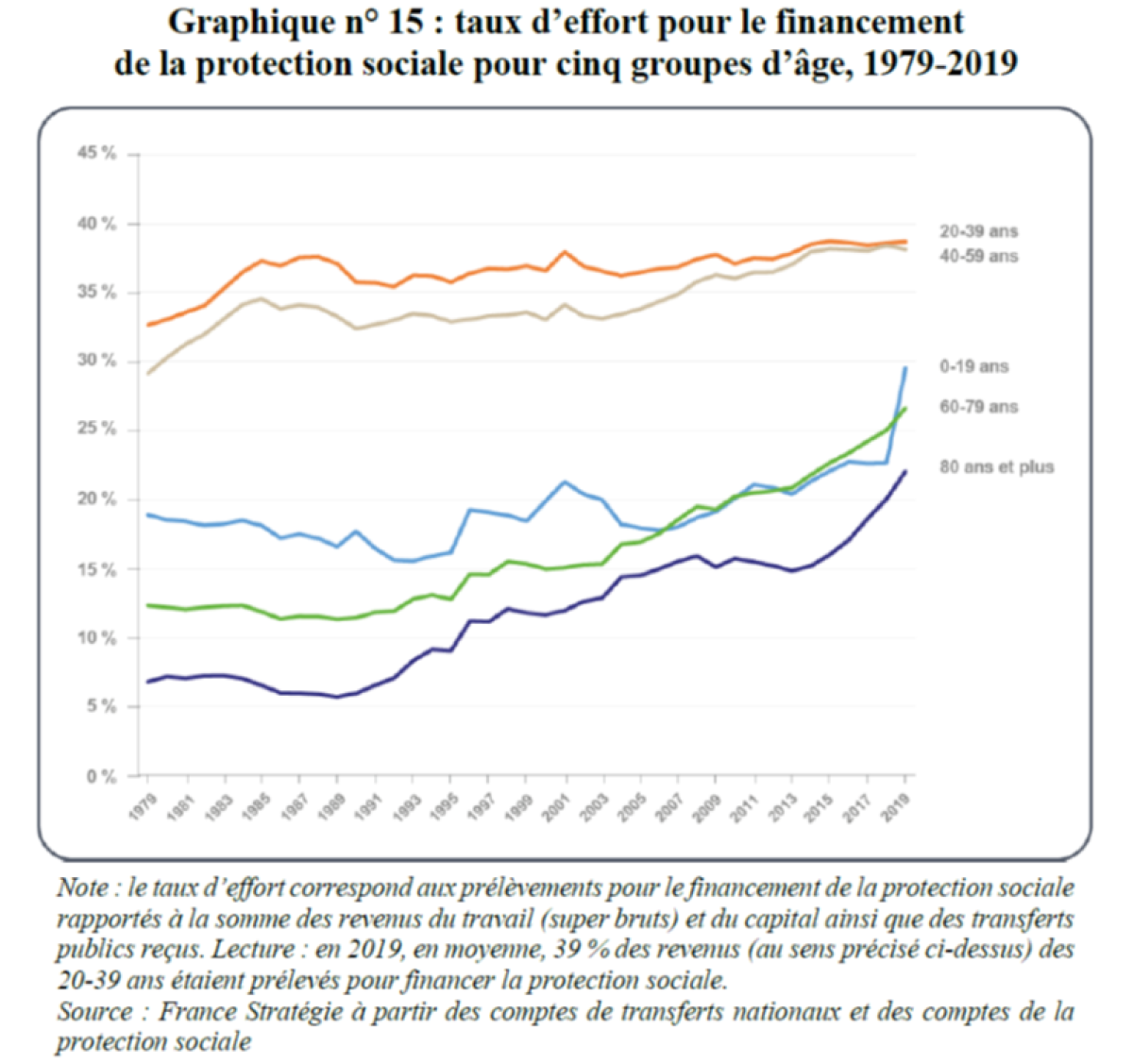 On peut cependant lire dans le rapport que les transferts intergénérationnels liés au financement de la protection sociale tendent à se rééquilibrer : tandis que la dépense par personne de protection sociale des plus de 60 ans progressait moins vite que la richesse nationale, leur contribution au financement de la protection sociale a augmenté. Un rééquilibrage nous dit la Cour qui s’explique d’un côté par la montée des impôts sociaux, notamment de la contribution sociale généralisée (CSG) à partir des années 1990, et de l’autre, par les politiques d’exonérations de cotisations sur les bas salaires dans les années 2000, qui ont allégé le poids des cotisations sociales des salariés. La Cour dit aussi que cela s’explique par la montée du taux d’emploi des 60 ans et plus, notamment sous l’effet des réformes des retraites.